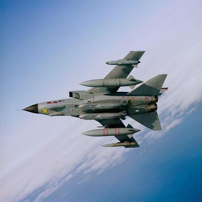 Самолет Tornado британских Королевских военно-воздушных сил. Под фюзеляжем прикреплены две ракеты Storm Shadow. Фото: Geoff Lee/MOD, OGL v1.0, commons.wikimedia.org