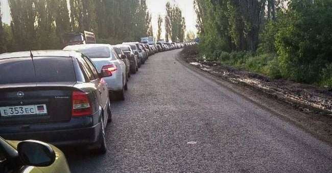 На границе Донецкой области с РФ возникла многокилометровая очередь