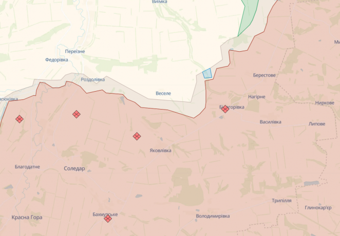 Кроме того, военные Сил обороны Украины выбили российских солдат с позиций около Белогоровки, что расположено между Спорным (восточнее) и временно оккупированным Соледаром (западнее).