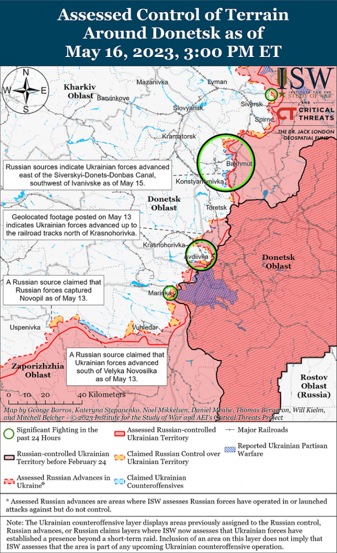 Вчера вечером военный сообщил, что «вагнеровцы» давят «очень агрессивно» в городе, идут тяжелые бои. Оккупантам удалось немного продвинуться вперед.