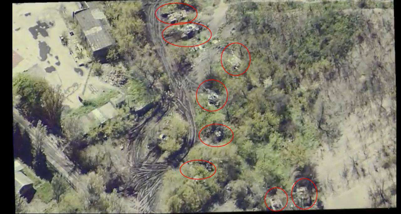 В итоге россияне лишились танков модели «Т-90». Опубликованы кадры разбитых боевых машин, снятые с помощью беспилотника.