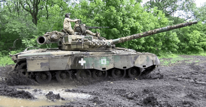 Украинский Т-80 уже привычной для себя дорогой выезжает из лесопосадки, набирает скорость и спешит на огневую позицию. Преодолевая несколько километров, он снова прячется между деревьями и вскоре начинает стрельбу.