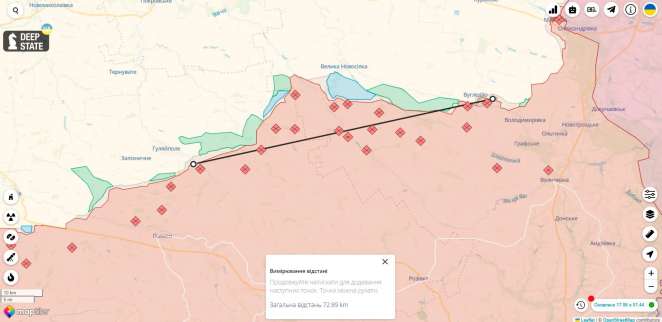 В этом направлении ВСУ заняты срезанием выступления между Угледаром и Гуляйполем. Это грамотные действия, которые возможны благодаря удачной фланговой работе. Это выступление мешает движению украинских войск в сторону Азовского моря. Пока существует это выступление прорываться очень опасно.