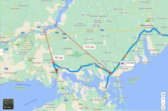 Дело в том, что весь поток военных и продовольственных грузов, военной техники, ГСМ и снарядов в оккупированный Крым россиян шел по «сухопутному мосту» - дороге от Ростова через Мелитополь и далее на полуостров - как раз через поврежденные мосты. Минимальное расстояние дороги от освобожденной украинской территории на правом берегу Днепра - 110 км.