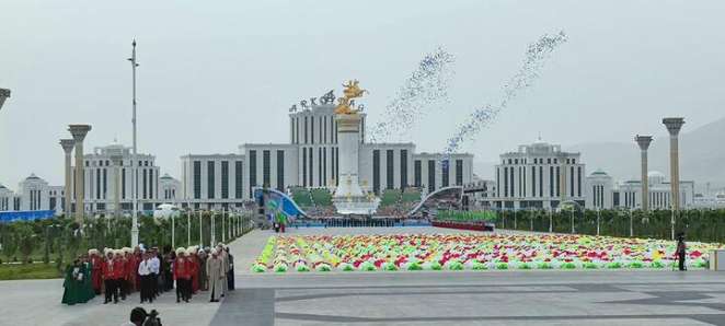 В церемонии открытия города Аркадаг участвует нынешний президент Туркменистана президент Сердар Бердымухамедов — сын именинника и бывшего президента страны.
