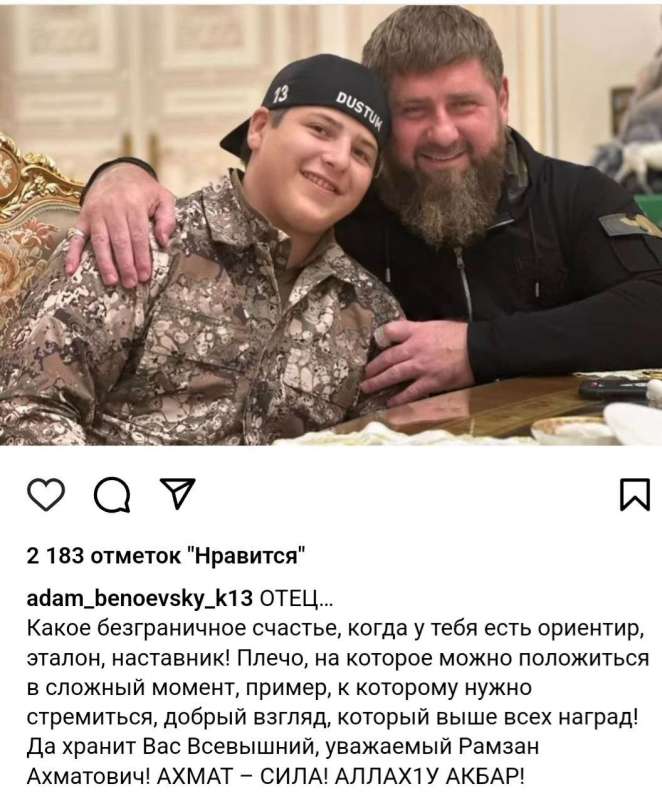 Сын Кадырова разместил сообщение, в котором желает, чтобы отца «хранил Всевышний».