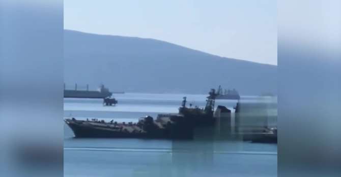 В порту Новороссийска тонет большой десантный корабль РФ «Оленегорский горняк»
