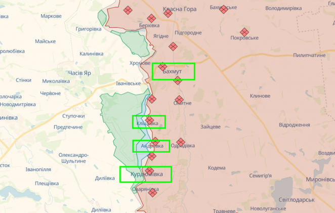 Заместитель министра обороны подчеркнула, что вблизи населенных пунктов Клещеевка, Курдюмовка и Андреевка продолжаются ожесточенные бои. Как отметила Маляр, ВСУ на указанном направлении продвигаются, там есть успехи.