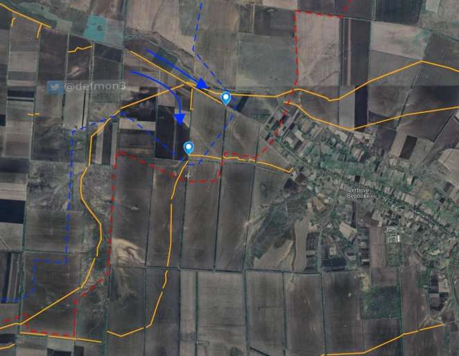 Авторы отмечают, что ВСУ стали активнее использовать пехоту на этом направлении. О том что украинские военные дошли до траншей у Вербового, также пишет OSINT-аналитик с ником Def Mon.