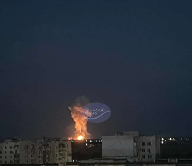 Об этом пишет Telegram-канал «Крымский ветер» на основании свидетельств очевидцев. На опубликованном в сети фото виден мощный взрыв, в результате которого поднялся столб огня и дыма.