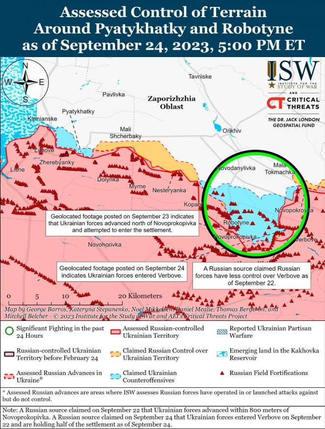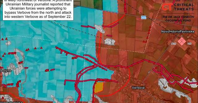 Еще несколько российских источников 24 сентября указывали, что украинские войска продолжают разворачивать технику против Вербового, в том числе британские БМП M2 Bradley. Хотя некоторые пропагандисты категорически отрицали любой украинский прорыв в Вербовом состоянием на воскресенье.