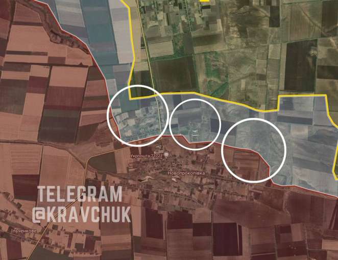 Об этом пишет военный эксперт Telegram-канала Kravchuk, публикуя направления наступательной операции на Новопрокоповку и тепловую карту господствующих высот, передает «Диалог».