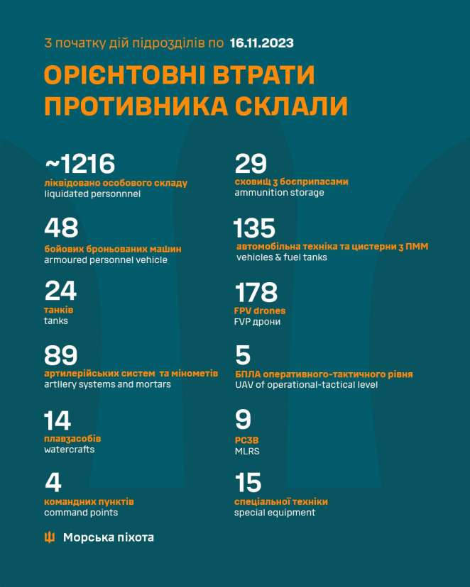 Кроме того, сводным подразделением РЭБ морской пехоты было нейтрализовано 135 FPV дронов и 5 БПЛА оперативно-тактического уровня.