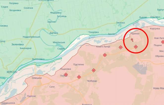 Российские Z-каналы уверяют, что ВСУ продвинулись в районе села Крынки, что на востоке от Херсона.