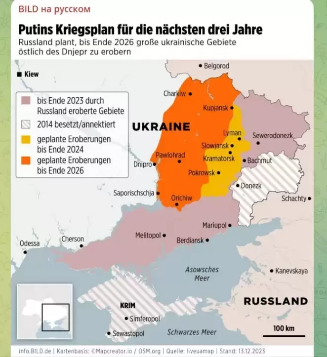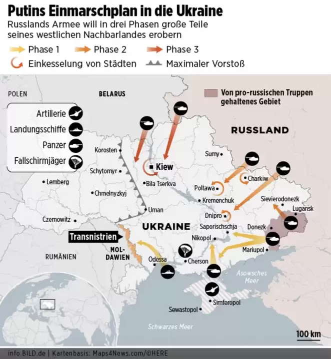 В начале декабря 2021 года Bild опубликовал карту будущего российского вторжения в Украину