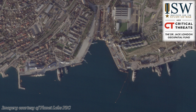 «Спутниковые изображения указывают на то, что украинские удары заставили российские войска на долгосрочной основе переместить средства ЧФ из оккупированного Севастополя в порты в восточной части Черного моря», — отметили аналитики.