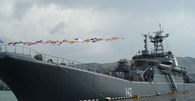 «А флота на России становится все меньше! На этот раз вслед за флагманом ЧФ РФ - крейсером «Москва», направляется большой десантный корабль «Новочеркасск», - говорится в сообщении.