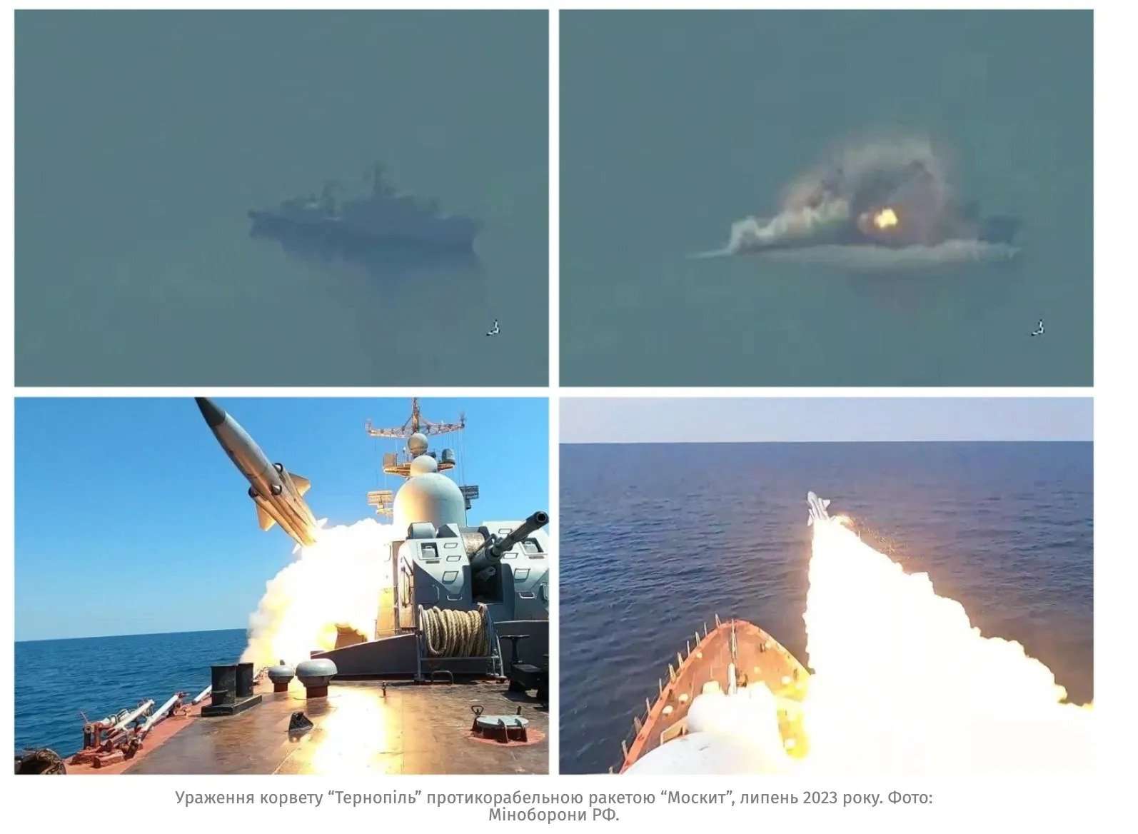 Российские военные в ходе учений расстреляли и затопили украинский корвет «Тернополь». Его оккупанты похитили в 2014 году во время аннексии Крыма. Ракета попала в среднюю часть корабля выше ватерлинии и сдетонировала.