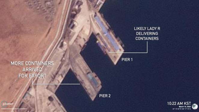В последний раз судно появлялось на почти ежедневных спутниковых снимках у любого из причалов 12 февраля, тогда как на причале 2 не было никакой активности, позволяющей предположить исходящие грузы во время очевидной паузы.