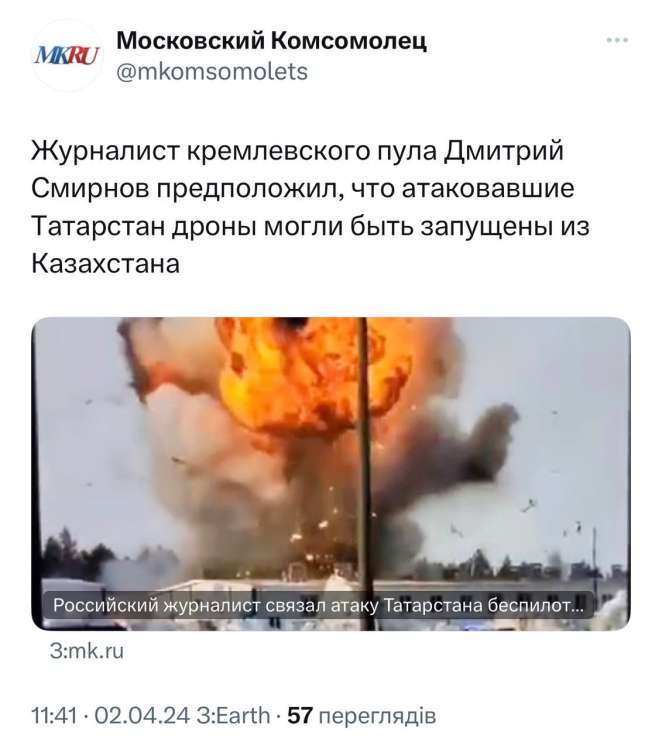 На фоне эмоционального потрясения, российские СМИ пытаются понять, как именно удалось провести настолько глубокую атаку. Расстояние оказалось настолько большим, что в российских СМИ начали распространять версию, что дрон по Татарстану прилетел из Казахстана. Якобы украинцы не могли запустить БПЛА так далеко.