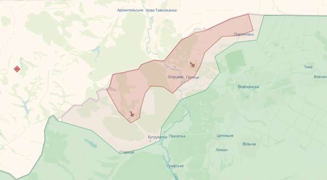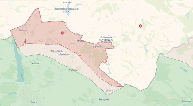 В районе населенного пункта Липцы, по данным DeepState, россияне заняли села Стрелучья, Красное, Пыльная, Борисовка. Они переходят в красную зону.