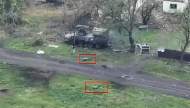 Разбитый российский БТР-82А и российская пехота вблизи села Соловьево Донецкой области. Май, 2024-го