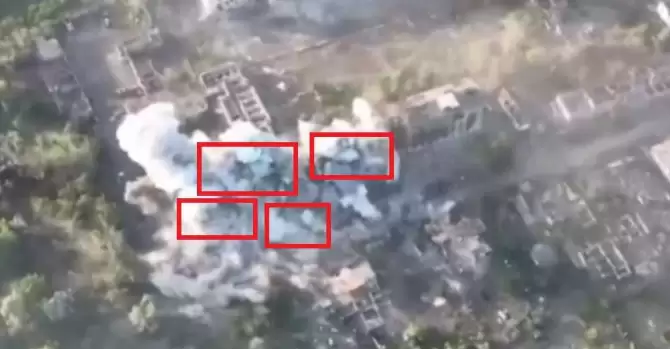 Удары были нанесены с использованием корректируемого вооружения, поскольку на кадрах опубликованного видео показаны точные взрывы относительно небольшой площади.