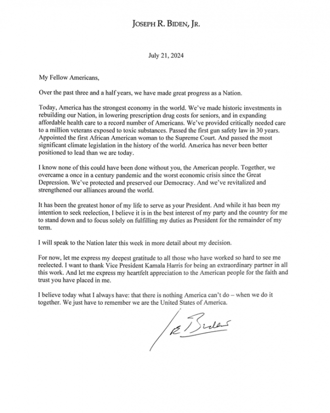•   UDFНовостиВ мире ❯ Байден объявил о выходе из президентской гонки