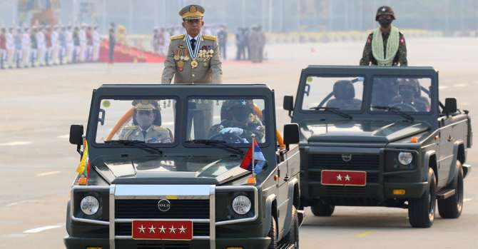 Главком вооруженных сил Мьянмы Мин Аун Хлайн на военном параде. Фото: Минобороны РФ
