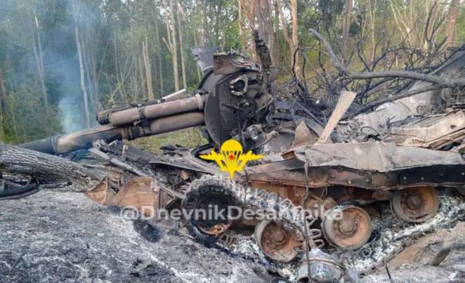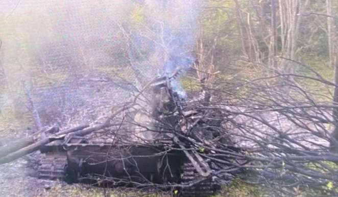 По данным пабликов, в Курской области вертолет Ка-52М армии РФ ударил по российской военной колоне. В результате была уничтожена САУ страны-агрессора.