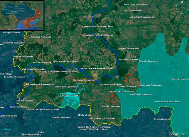 «Развитие района Глушково Курской области в России весьма интригует как на операционном, так и на стратегическом уровне. Российские каналы сообщают, что село Весёлое взято украинскими войсками, что, судя по видео, которые мы видели, весьма вероятно. Это сближает украинские войска с Глушково и грозит расколоть этот котел к югу от реки Сейм на две части», — подчеркнул эксперт.