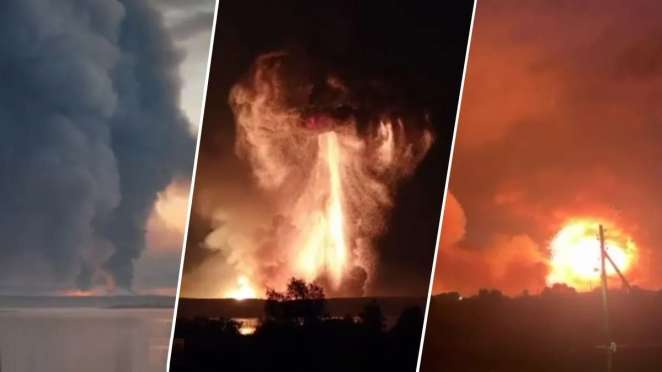 Пораженный снарядами украинской армии арсенал № 107 российской армии расположен в 500 километрах к северу от украинской границы и хранил 240 тонн боеприпасов.