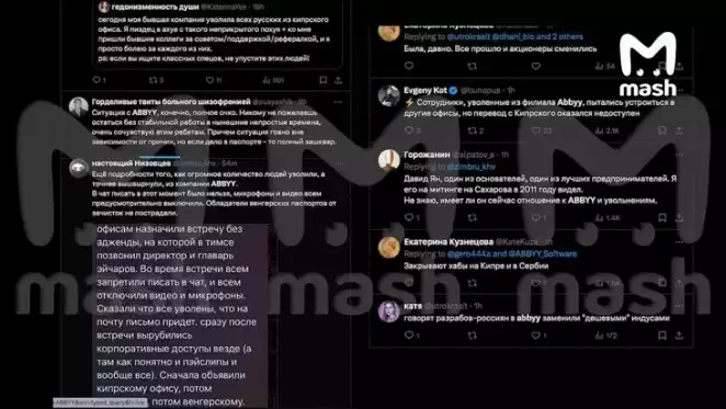 На одной из онлайн-встреч для сотрудников из Сербии присутствовали исключительно граждане России. На встрече выступили генеральный директор ABBYY Ульф Перссон и директор по продуктам Патрик Жан, которые поблагодарили сотрудников за работу и заявили, что «все молодцы, но компания должна двигаться дальше». После встречи уволенным сотрудникам отключили доступы к корпоративным системам, а соглашения об увольнении пообещали прислать на их личные электронные почты.