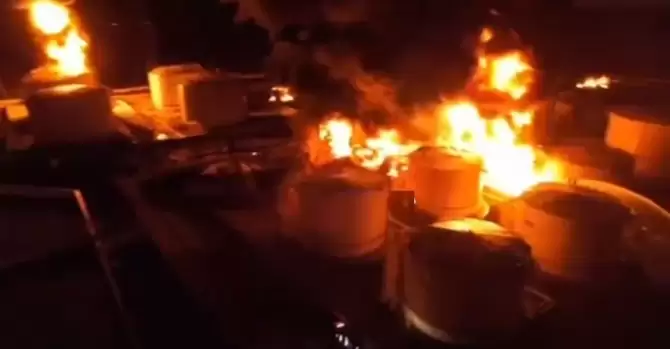 Отмечается, что пожар вспыхнул в 21.07. К нефтебазе помчались скорые и пожарные машины.