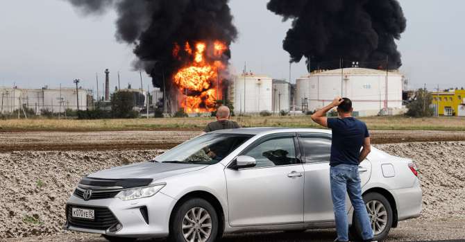 Украинские беспилотники атаковали нефтебазу в Феодосии в ночь на 7 октября. Под удар попал Морской нефтяной терминал — крупнейший в Крыму по объемам перевалки нефтепродуктов. Начался сильный пожар. Судя по всему, беспилотники поразили объект в нескольких местах, поскольку в соцсетях появились фотографии с тремя столбами густого черного дыма. Городские власти ввели режим техногенной чрезвычайной ситуации муниципального характера, ограничив доступ людей и транспорта в пораженную зону. О пострадавших не сообщалось.