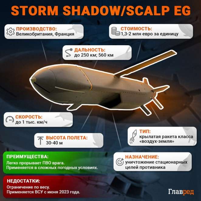 «На видео пролет британских ракет Storm Shadow, которыми был нанесен удар по Марьино Рыльского района Курской области. На днях стало известно, что Британия разрешила наносить этими ракетами удары вглубь России», - говорится в сообщении.