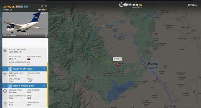 По данным FlightRadar, cамолет Ил-76Т с номером SYR9218, на борту которого предположительно находился Асад, разбился вблизи Аль-Сувейри.