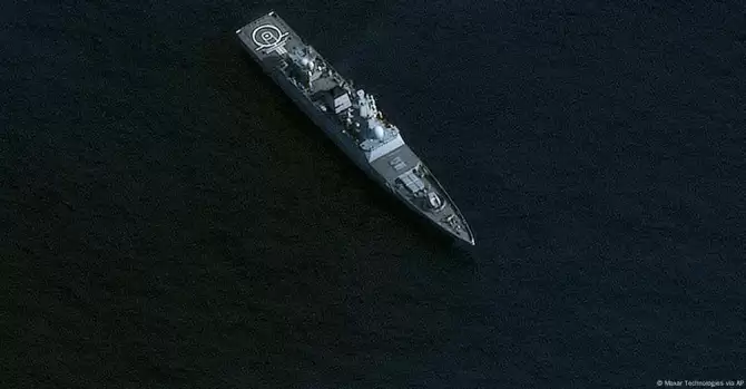 Спутниковый снимок российского фрегата "Адмирал Горшков" рядом с базой в Тартусе. Фото: Maxar Technologies via AP Photo/picture alliance