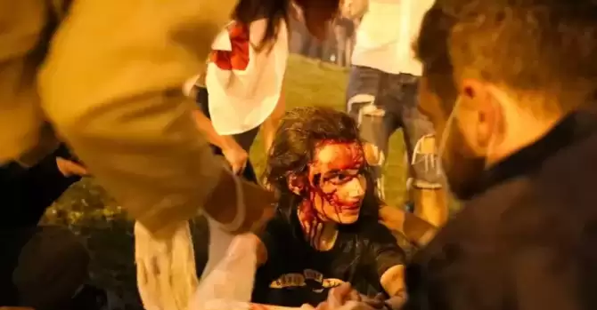 «Нас забросали светошумовыми гранатами, я сразу потеряла сознание, меня ранило в голову, я была контужена. Мои друзья оттащили меня от дороги, они тоже были ранены, посечены осколками. Каким-то образом у меня ещё в бедре оказались три резиновые пули. Наверное, это произошло уже тогда, когда я потеряла сознание. Видимо, я выглядела очень опасной на земле. Очнулась я в реанимации», — рассказывала она сама о том, что тогда произошло, в одном из интервью.