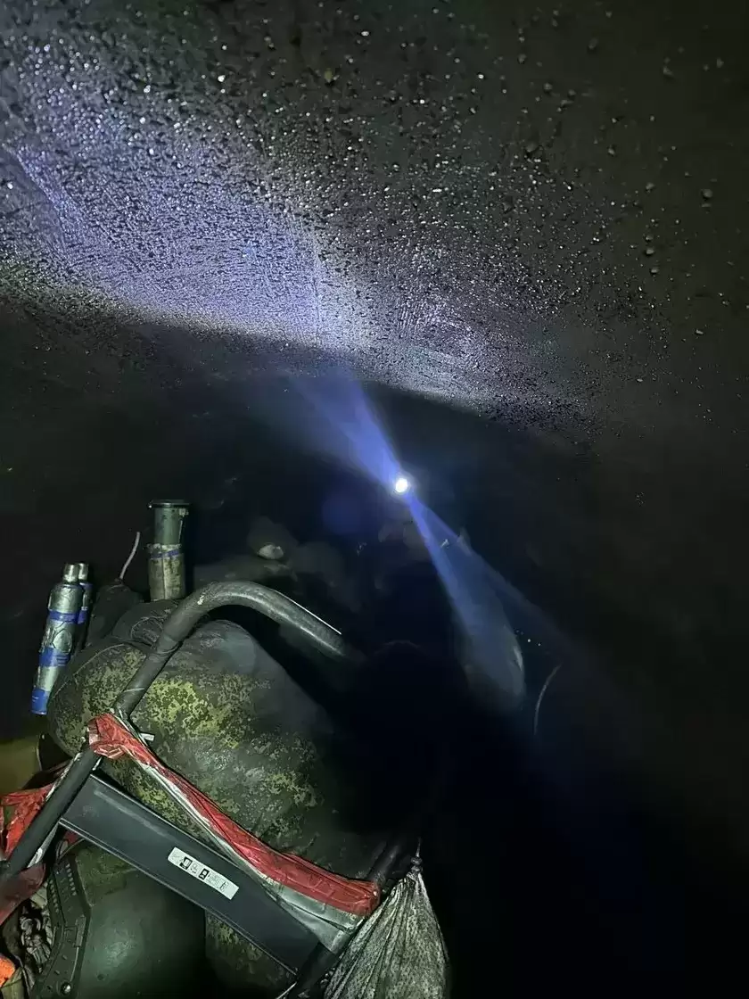 Российский военный перемещается по газопроводу. Фото: Z-канал
