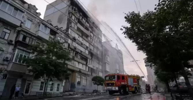 «Спасатели работают в жилом доме, где в результате падения осколков произошел пожар на верхнем этаже. Еще по нескольким адресам зафиксировано падение осколков. По одному из адресов — также пожар. Все службы на месте», — уточнил Виталий Кличко в 03:22.