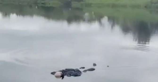 По информации, полученной из источника, мужчина совершил прыжок в озеро, имея на шее некий предмет, предположительно камень.