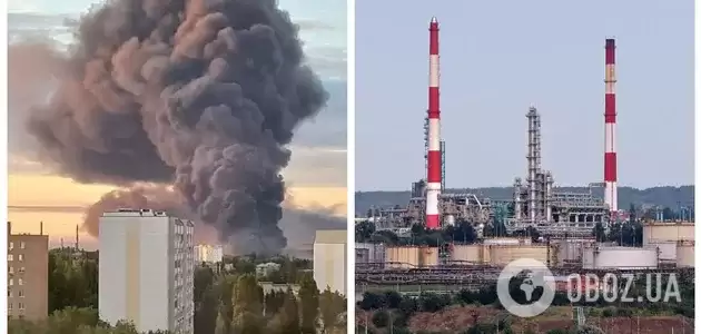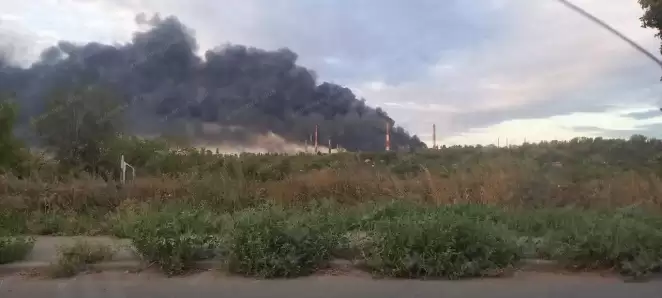 В это же время очевидцы начали публиковать видео, как БПЛА поражают территорию нефтеперерабатывающего завода, в результате чего в районе НПЗ прогремели мощные взрывы. После атаки на территории объекта начался сильный пожар и поднялся огромный столб густого черного дыма, что характерно для горения нефтепродуктов.