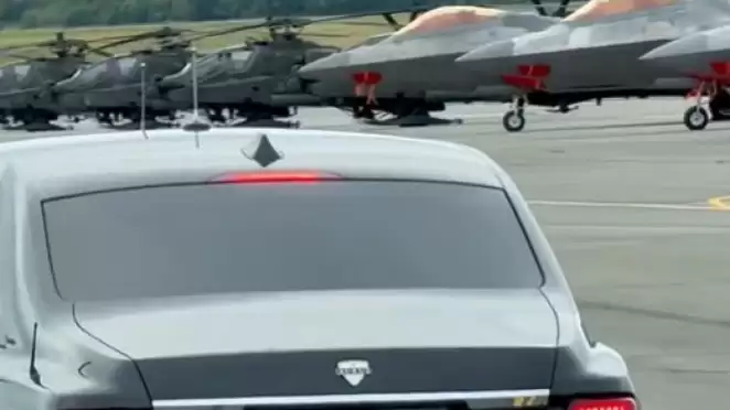 После того, как Трамп и Путин поприветствовали друг друга на аляскинской авиабазе «Элмендорф-Ричардсон», над их головами пролетели пять бомбардировщиков. А на кадрах, которые разместил в социальных сетях помощник президента США, видно, как лимузин, куда сели Трамп с Путиным, проезжает мимо выстроившихся в ряд военных самолетов и вертолетов.