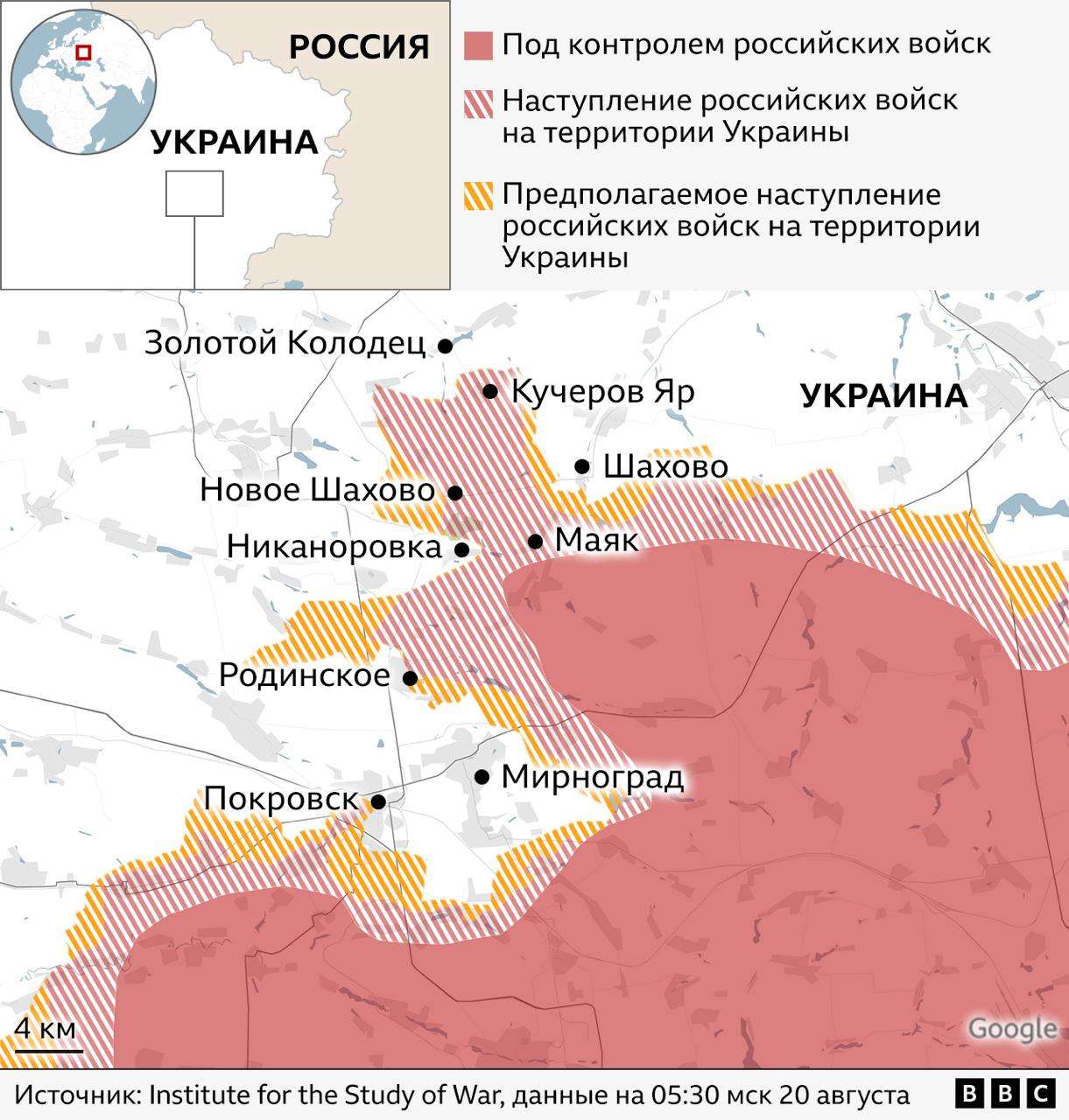 Украинский аналитик Константин Машовец отмечает, что российские силы пытаются деблокировать передовые подразделения ударами с правого фланга в районе Шахового и Нового Шахового, а также наступают в направлении Родинского. Украинские защитники контратакуют, пытаясь перерезать вклинение по линии Никаноровка – Маяк и постепенно ограничить присутствие оккупантов. Ранее Dialog.UA приводил заявление Генштаба ВСУ о боях возле.