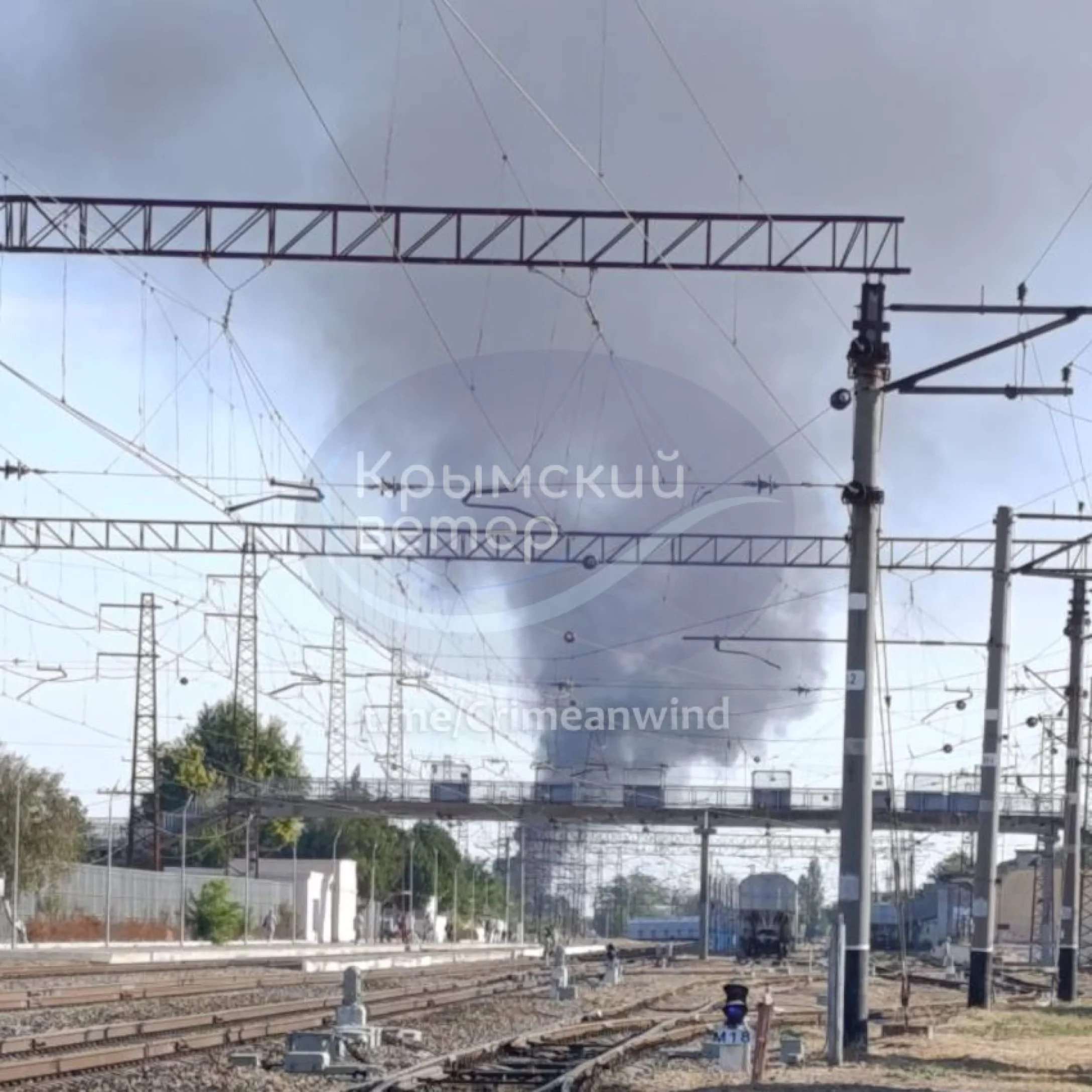 Информация о чрезвычайной ситуации в Крыму появилась в сети около 8 часов 26 августа. Указывается, что в Джанкое есть попадания по железнодорожной инфраструктуре: первое произошло 21 августа. Также добавляется фото, на котором видим цистерну, охваченную огнем и дымом.