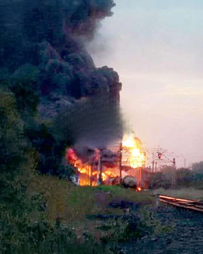В оккупированном Крыму зафиксировали пожар на железной дороге в Джанкое и на железнодорожной подстанции в Красногвардейске. В результате прилета дронов загорелся поезд, который перевозил топливо для армии Российской Федерации.