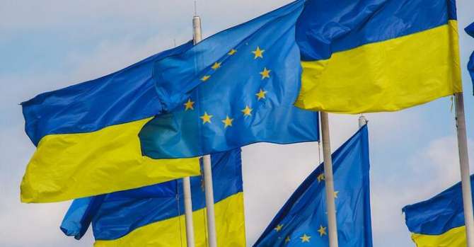 Флаги Евросоюза и Украины. Фото: Европарламент