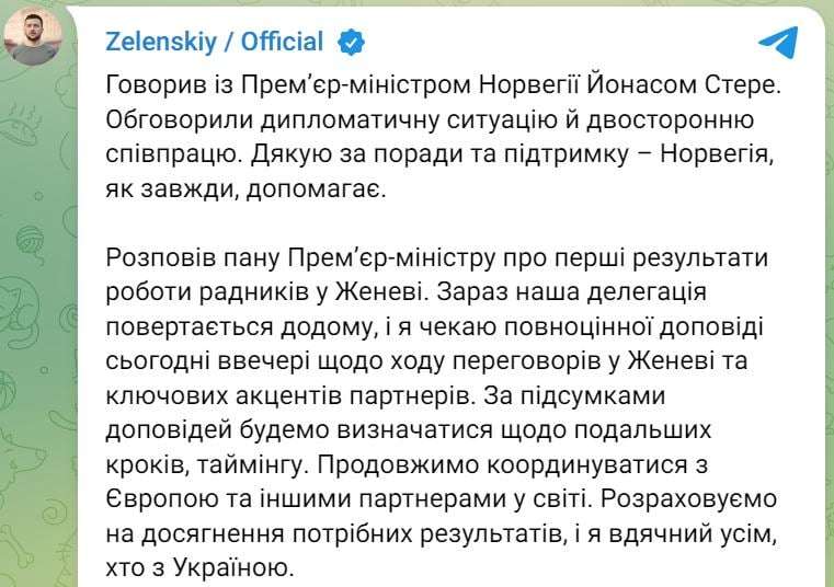Президент Владимир Зеленский сообщил, что ждет подробный отчёт делегации сегодня вечером. Уже после этого будут определены следующие шаги и новая дорожная карта переговоров.