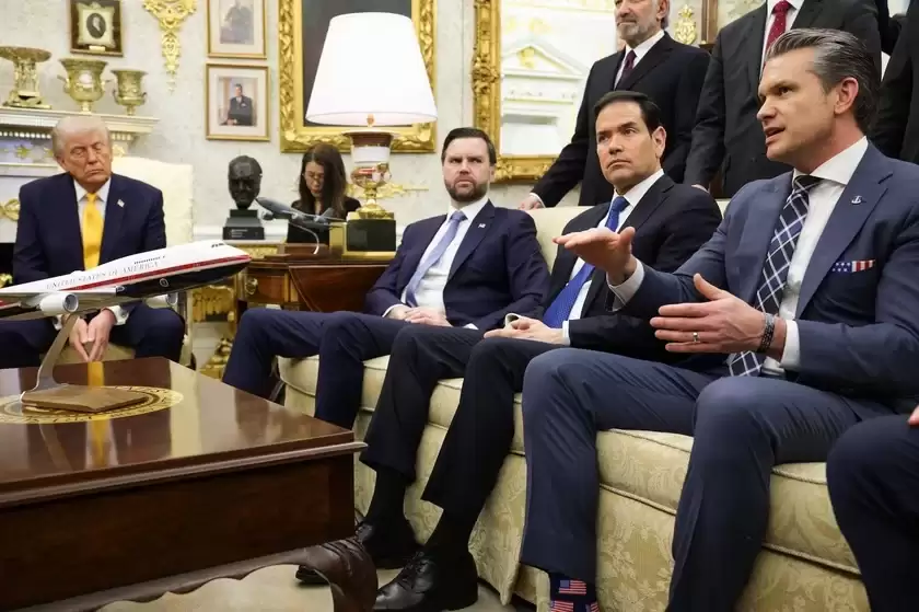 Дональд Трамп, вице-президент Джей Ди Вэнс, госсекретарь Марко Рубио и глава Пентагона Пит Хегсет. Фото: Alex Wong / Getty Images